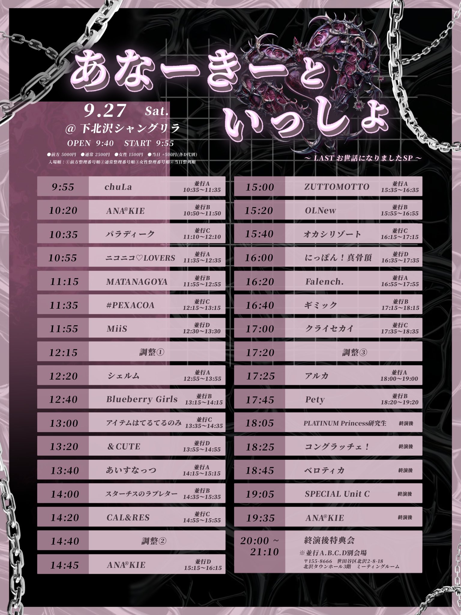 ANA®︎KIE / chuLa / Special Unit C / CAL&RES / べロティカ / ギミック / アイテムはてるてるのみ / ZUTTOMOTTO / パラディーク / オカシリゾート / OLNew / PLATINUM Princess研究生 / クライセカイ / #PEXACOA / Falench. / にっぽん!真骨頂 / コングラッチェ! / Blueberry Girls / アルカ / &CUTE / スターチスのラブレター / シェルム / MiiS / あいすなっつ / Pety / ニコニコ♡LOVERS / MATANAGOYA
