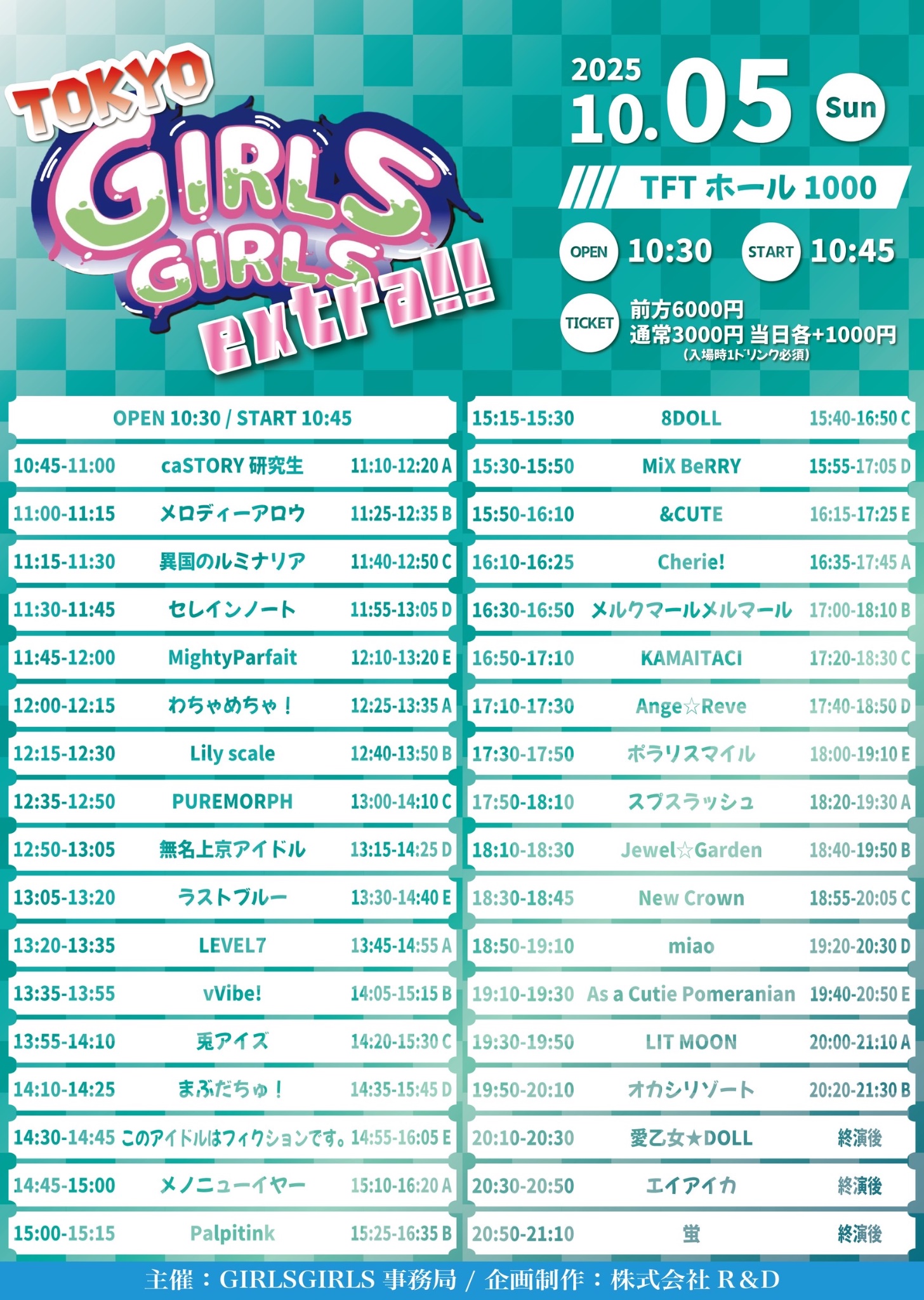 Ange☆Reve / 愛乙女★DOLL / miao / KAMAITACI / Jewel☆Garden / LIT MOON / As a Cutie Pomeranian / オカシリゾート / 蛍 / LEVEL7 / エイアイカ / スプスラッシュ / ポラリスマイル / New Crown / メルクマールメルマール / &CUTE / 8DOLL / MiX BeRRY / まぶだちゅ! / このアイドルはフィクションです。 / メノニューイヤー / Palpitink / PUREMORPH / vVibe! / MightyParfait / 兎アイズ / Cherie! / メロディーアロウ / セレインノート / わちゃめちゃ! / 異国のルミナリア / ラストブルー / 無名上京アイドル / Lily scale / caSTORY研究生