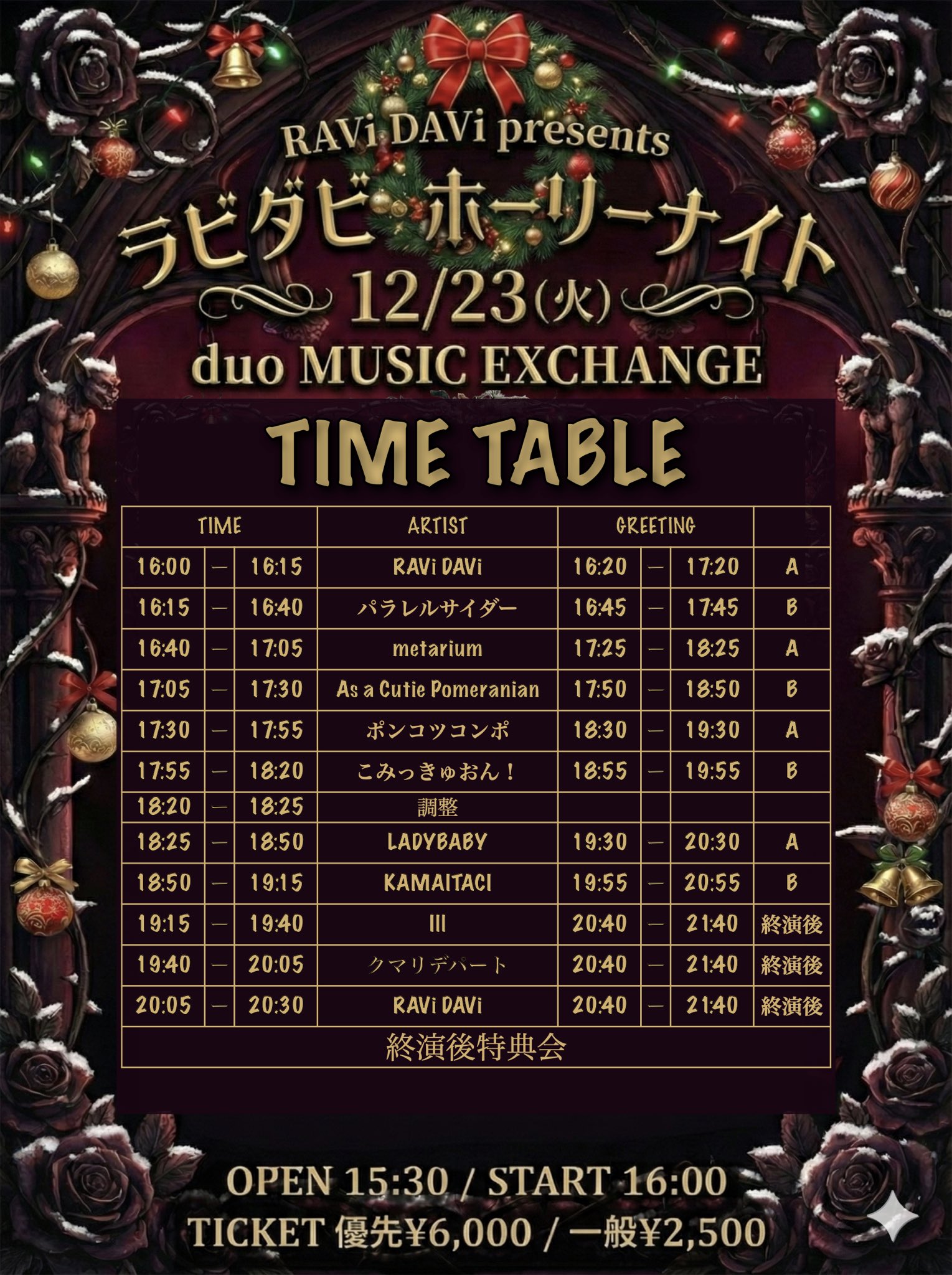 12/23 (火) RAViDAVi presents「ラビダビ・ホーリーナイト」