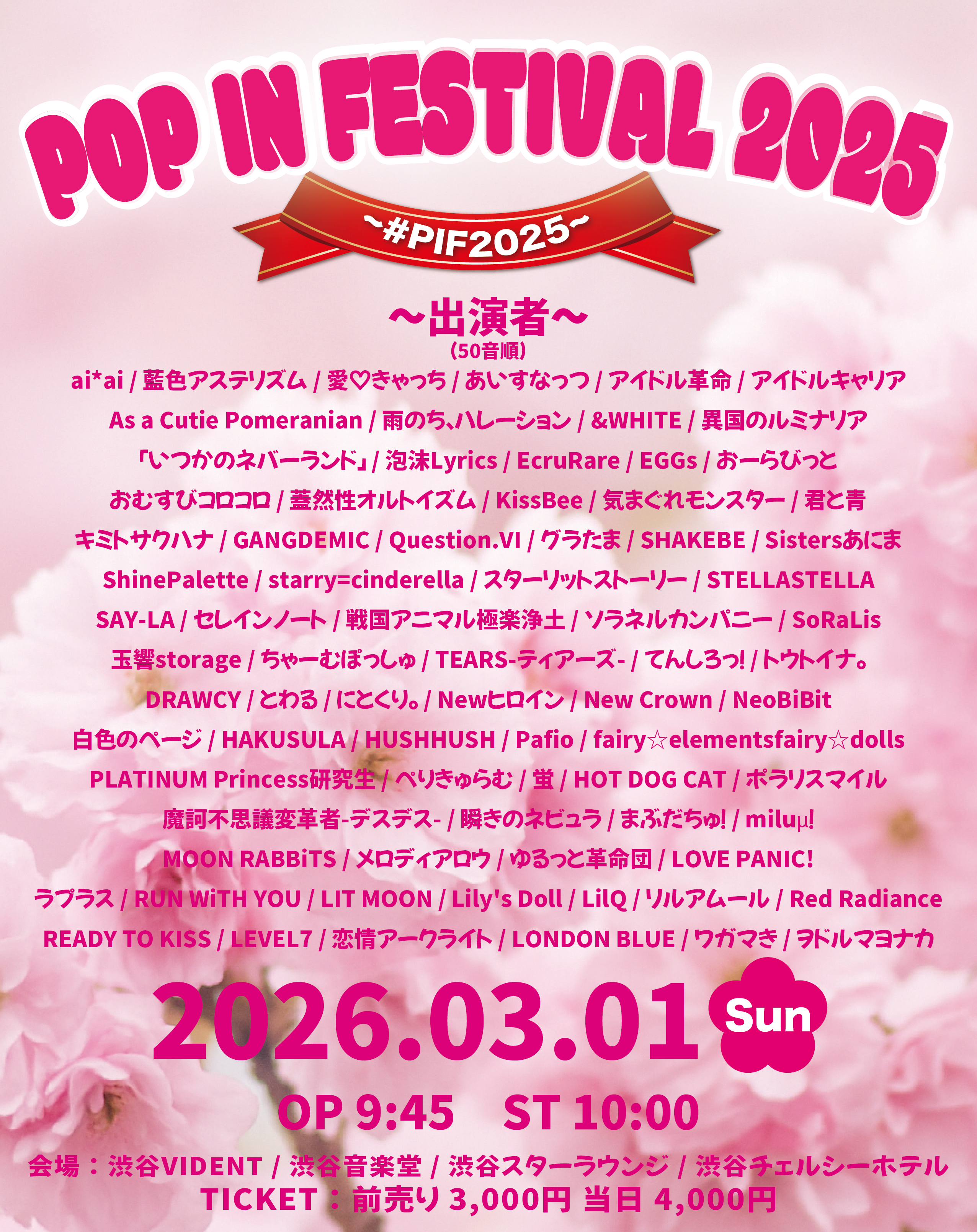 3/1(日) POP IN FESTIVAL 2026 ~ #PIF2026 ~