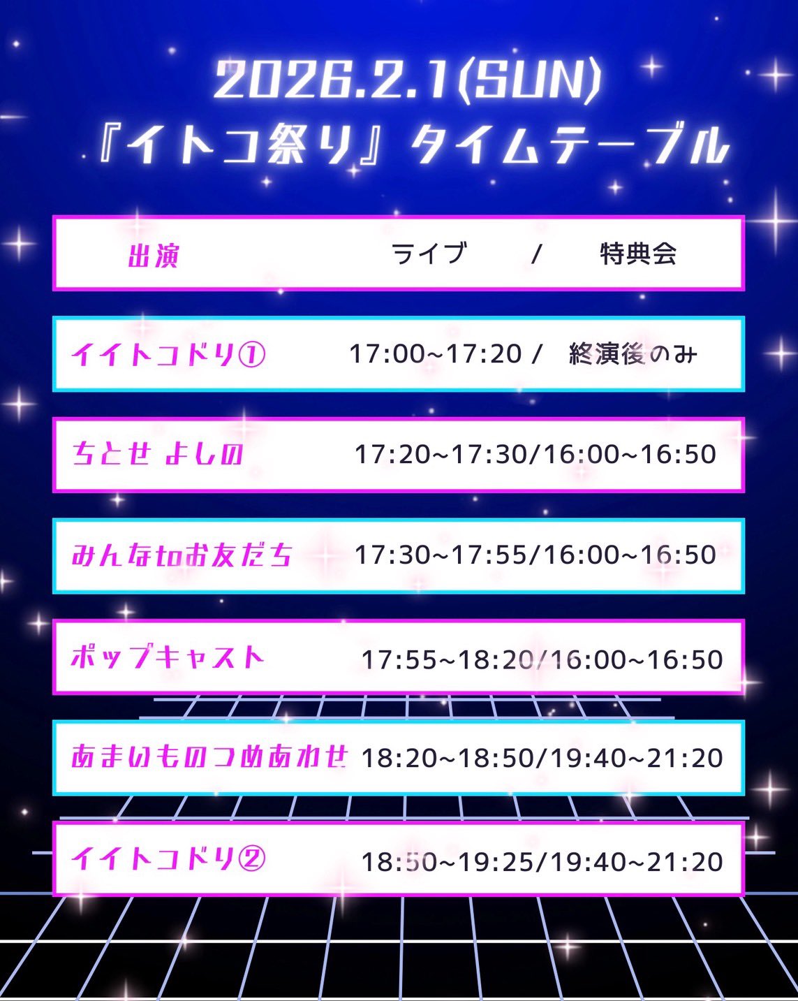 出演者イイトコドリ / あまいものつめあわせ / ちとせよしの / みんなtoお友だち / ポップキャスト