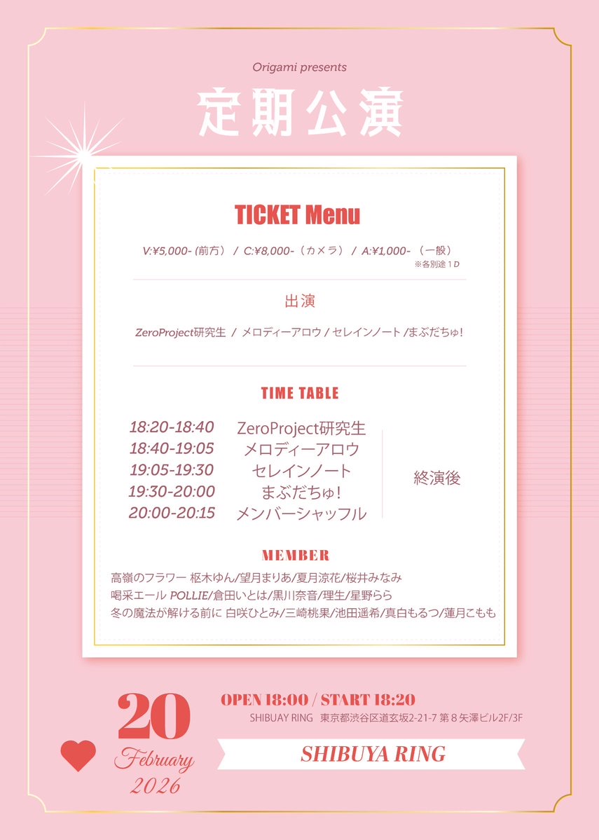 - 開場時刻 18:00 / 開演時刻 18:20